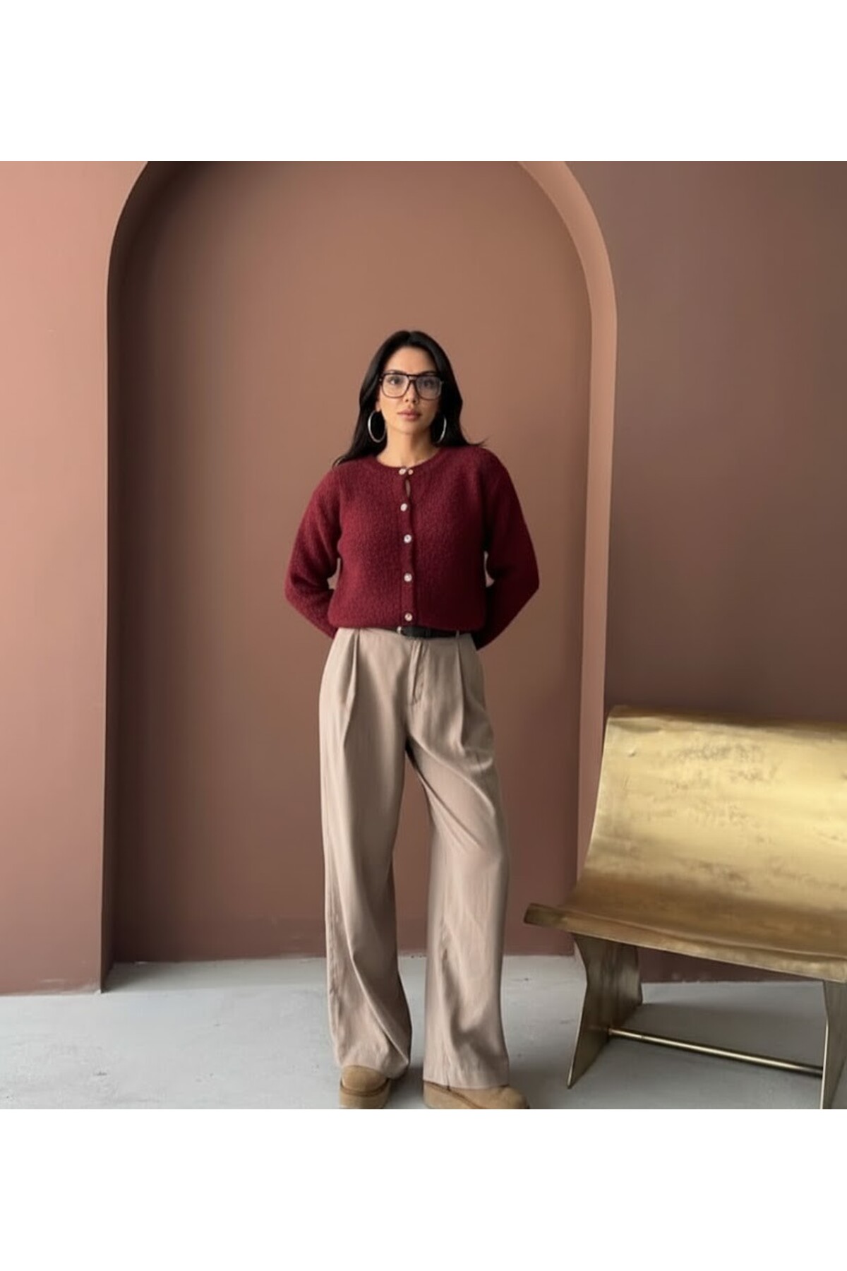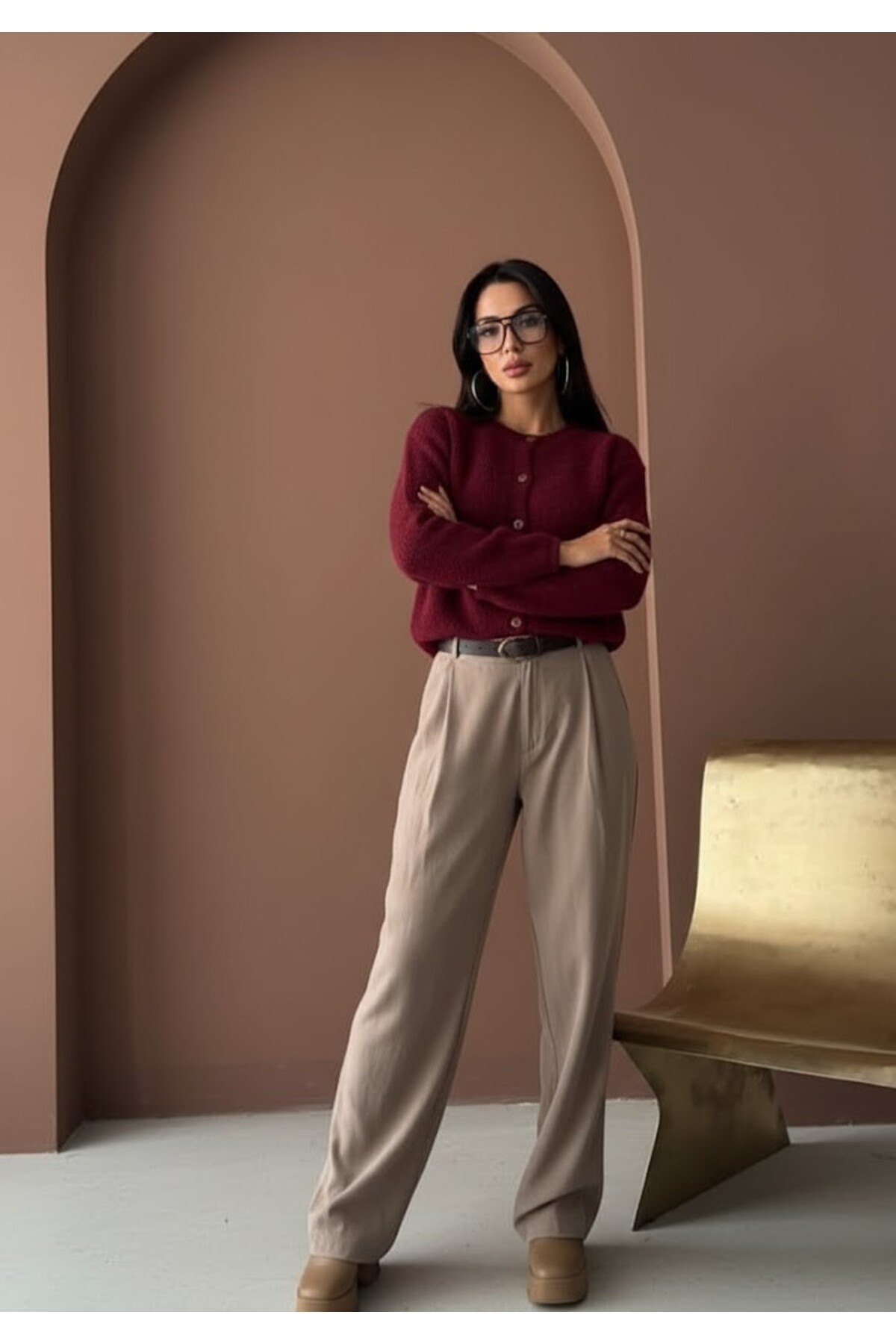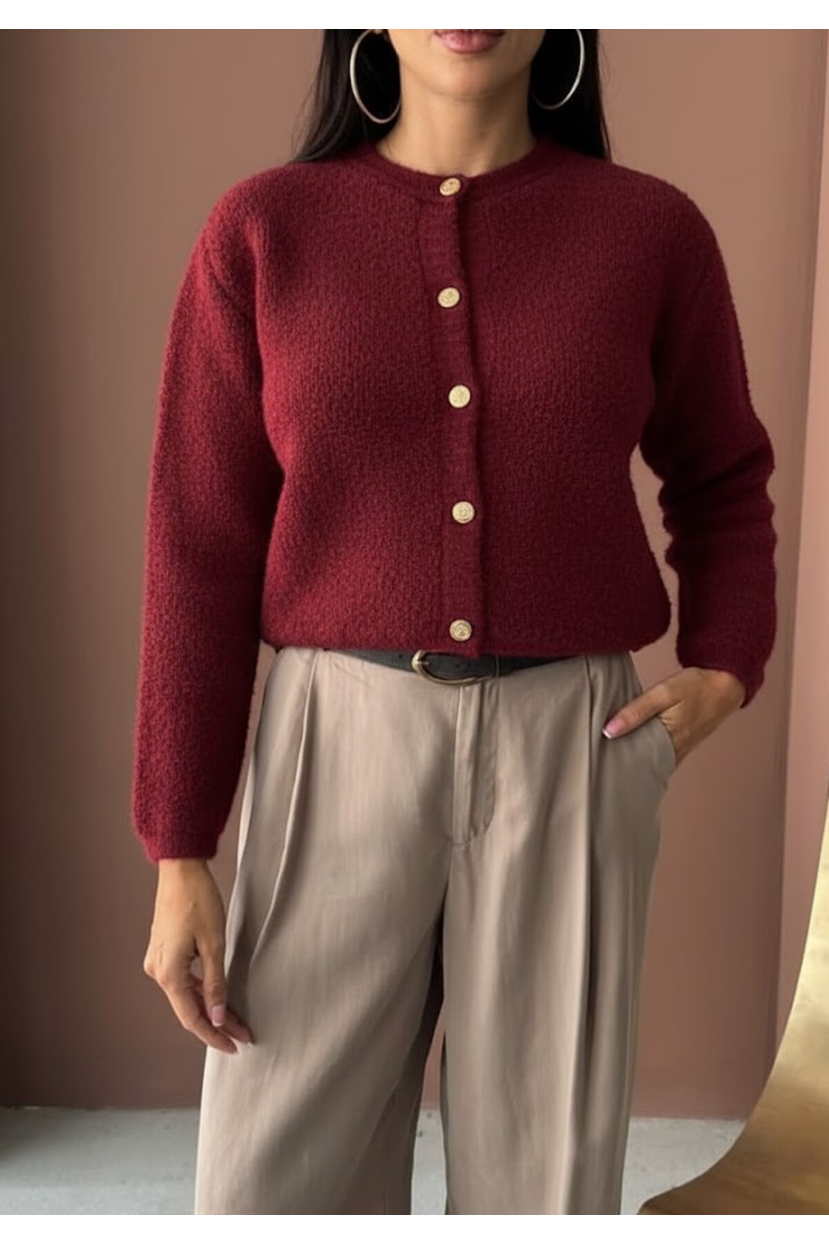Kadın Slim Fit Düğmeli Triko Hırka – %75 Akrilik, %22 Polyester, %3 Elastan