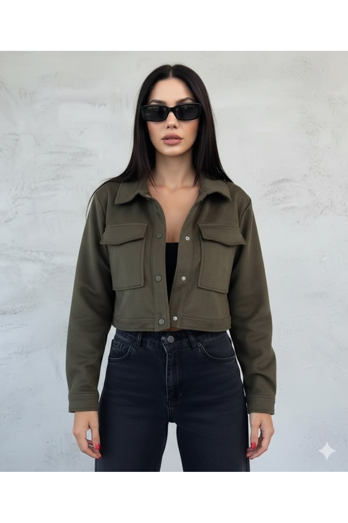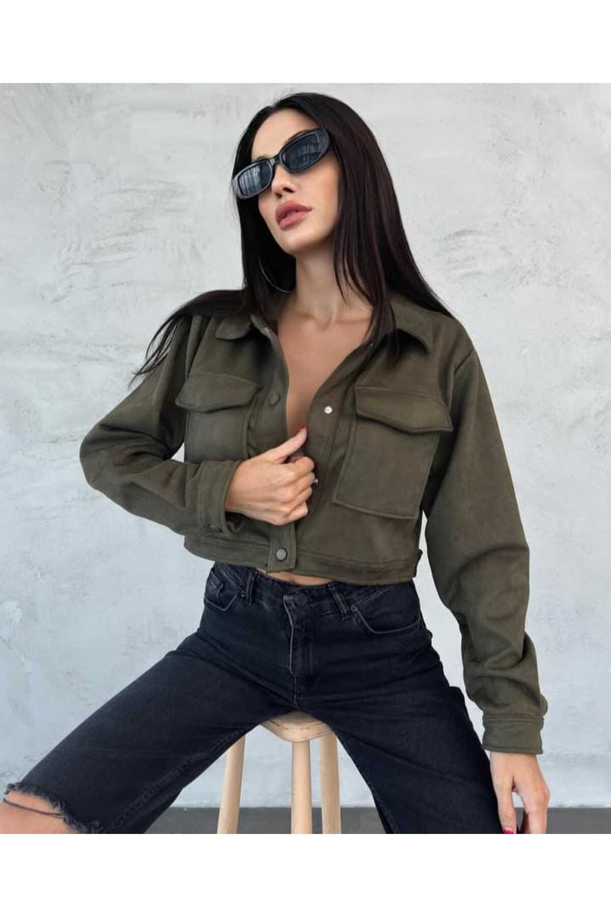 Kadın Su Geçirmez Süet Crop Ceket – Düğmeli, Astarlı, Casual Koleksiyon
