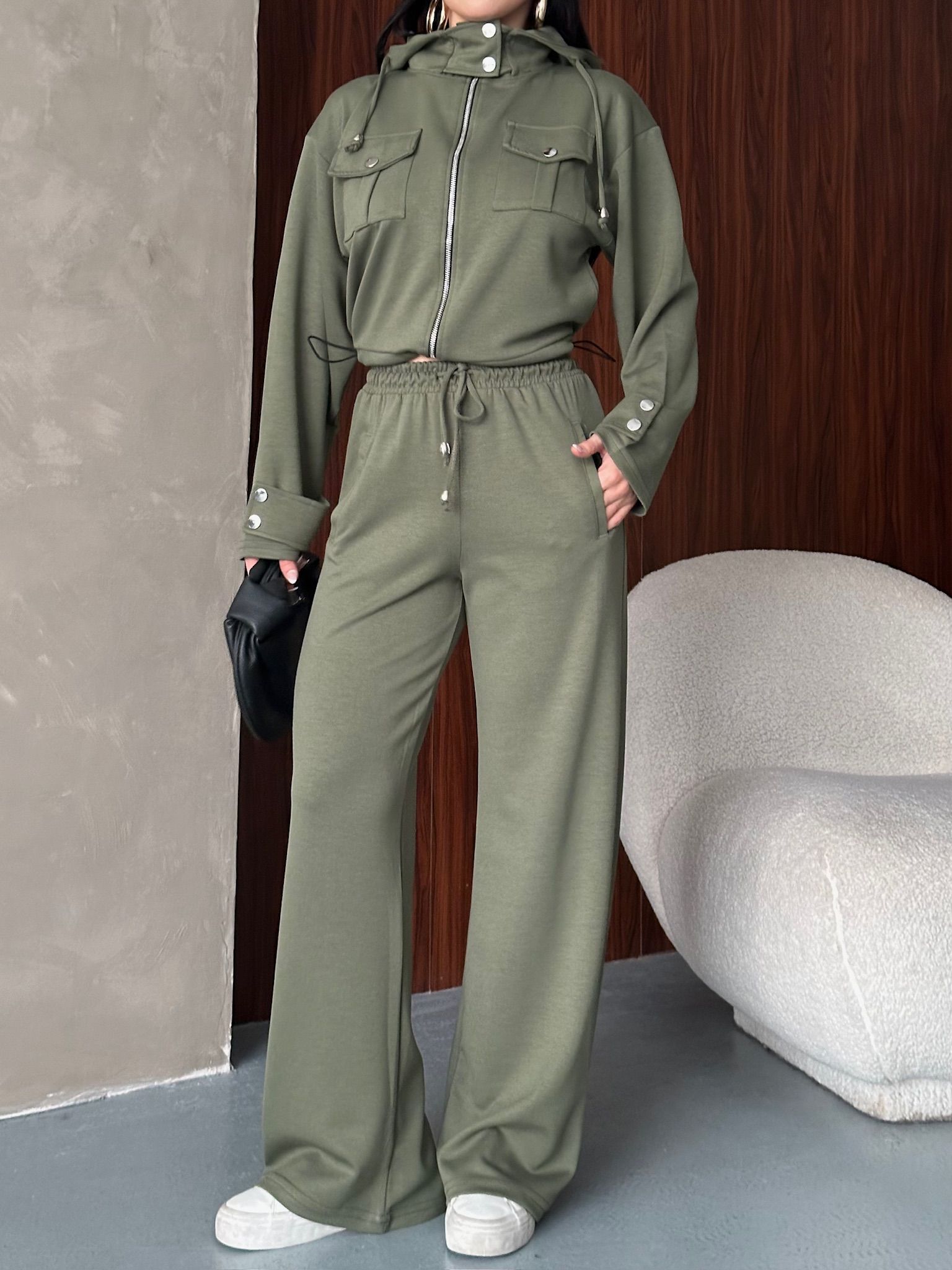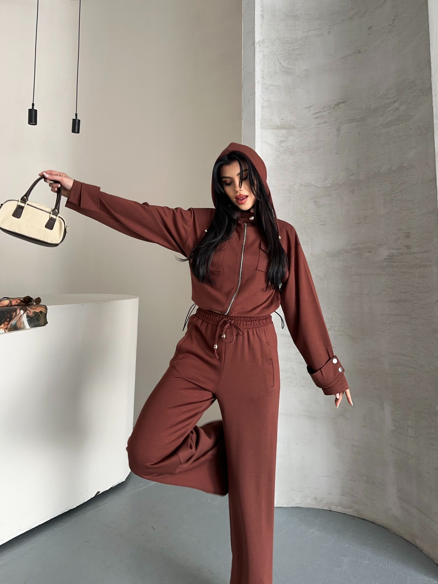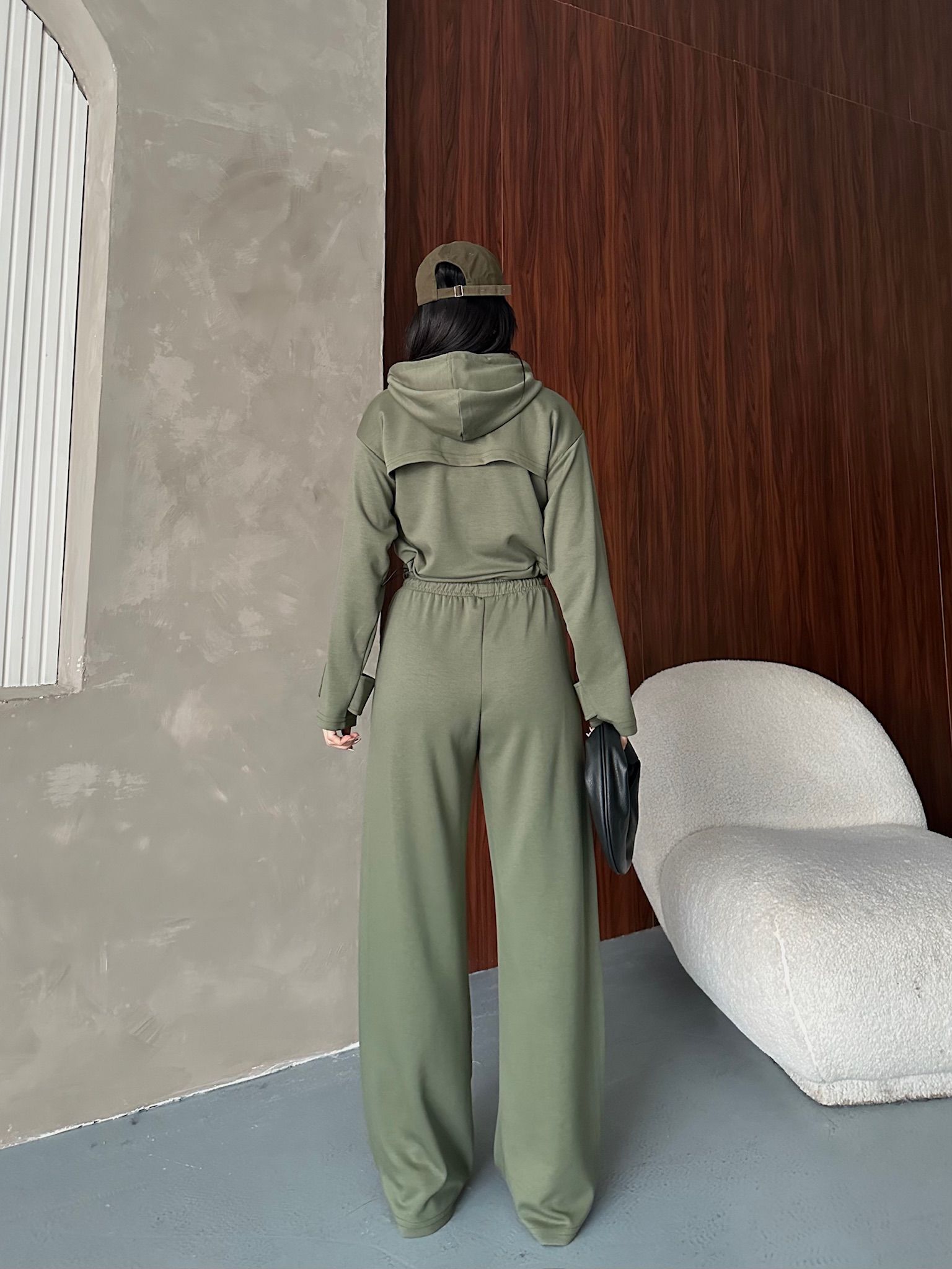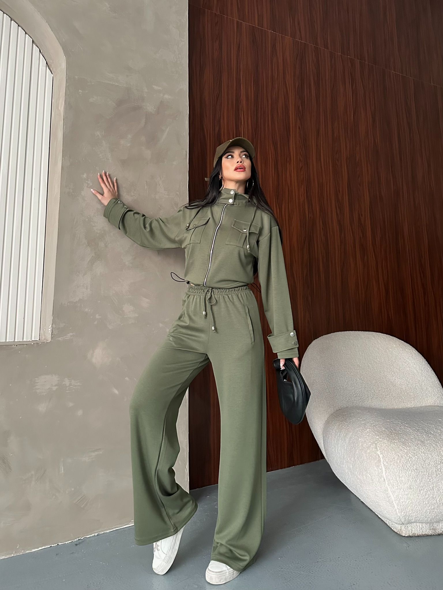 – Tüm mevsimlerde rahatlıkla tercih edilebilen 2’li takım, her türlü hava koşuluna uyum sağlar.; – Astarsız yapısı ile hafif ve konforlu bir kullanım sunar, hareket özgürlüğünüzü kısıtlamaz.; – Viskon materyali sayesinde yumuşak dokusuyla cildinize nazikçe dokunur ve gün boyu rahatlık sağlar.; – Süprem dokuma tipi ile dayanıklılığı artırırken, şık görünümünden ödün vermez.; – Geniş paça tasarımı modern ve rahat bir stil oluştururken, her adımınızda konfor sunar.; – Hırka-pantolon kombinasyonu ile hem şık hem de fonksiyonel bir takım deneyimi yaşatır.; – Standart kol tipi ile klasik ve zamansız bir görünüm elde edersiniz.; – Çift cepli tasarımı küçük eşyalarınız için pratik saklama alanları sunar.; – Bağcıklı kemer/kuşak detayı belinizi zarifçe sararak feminen bir siluet çizer.; – Yüksek bel kesimi sayesinde vücut hatlarınıza mükemmel uyum sağlar ve ş