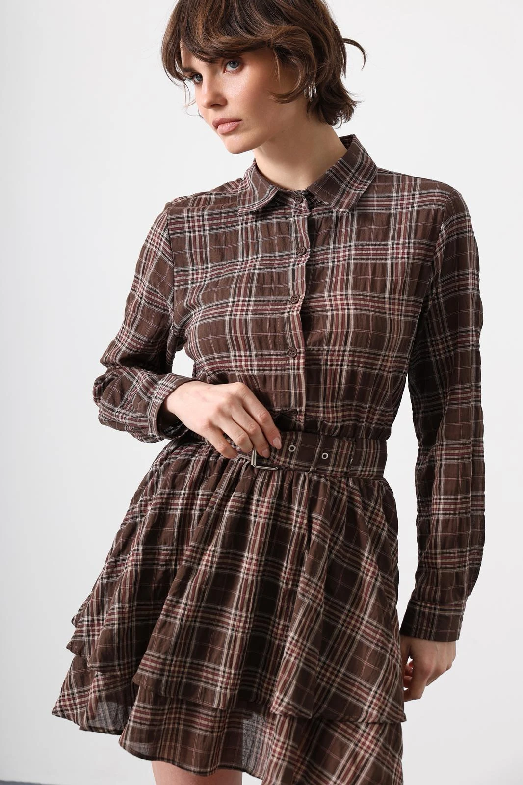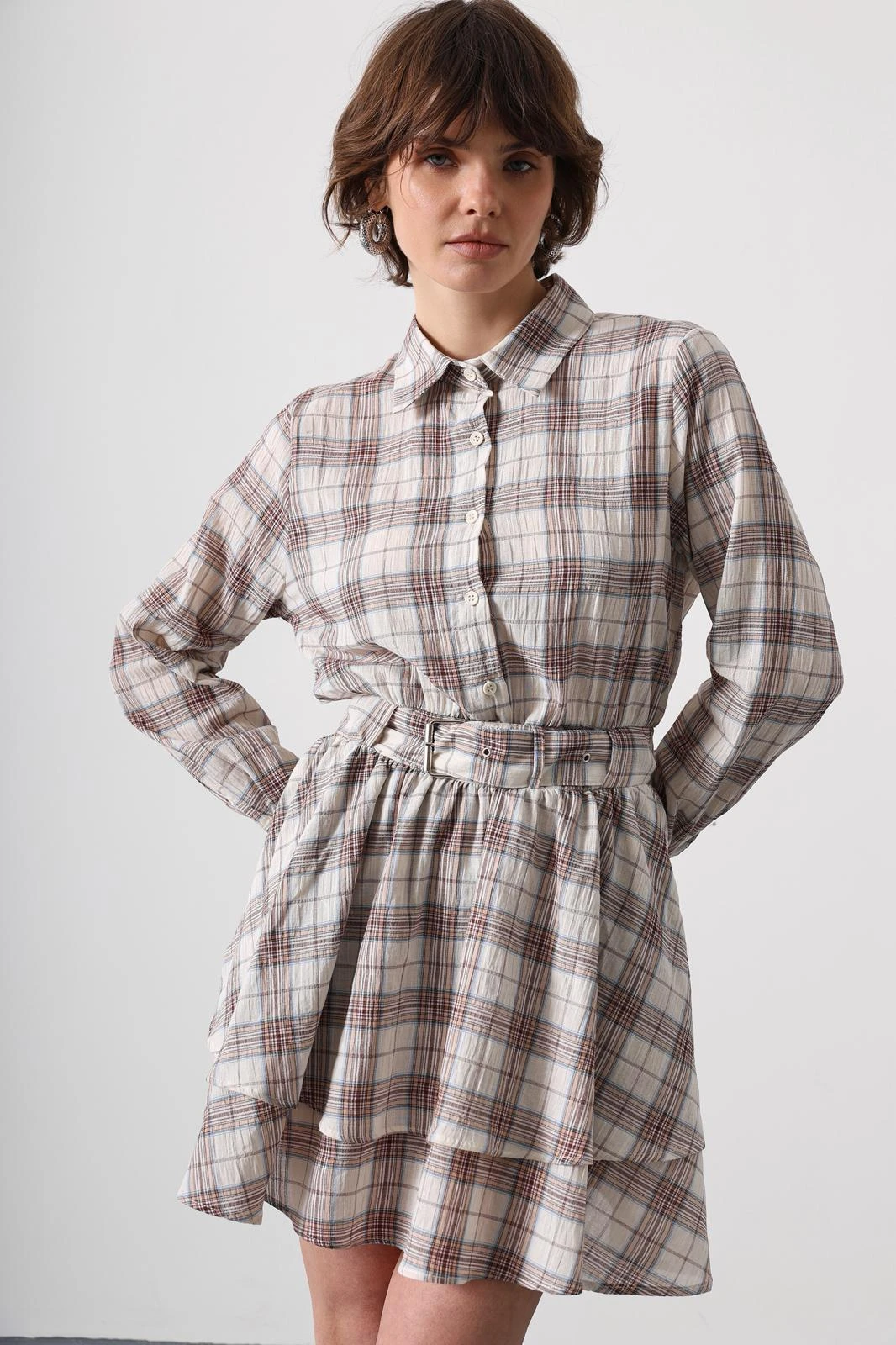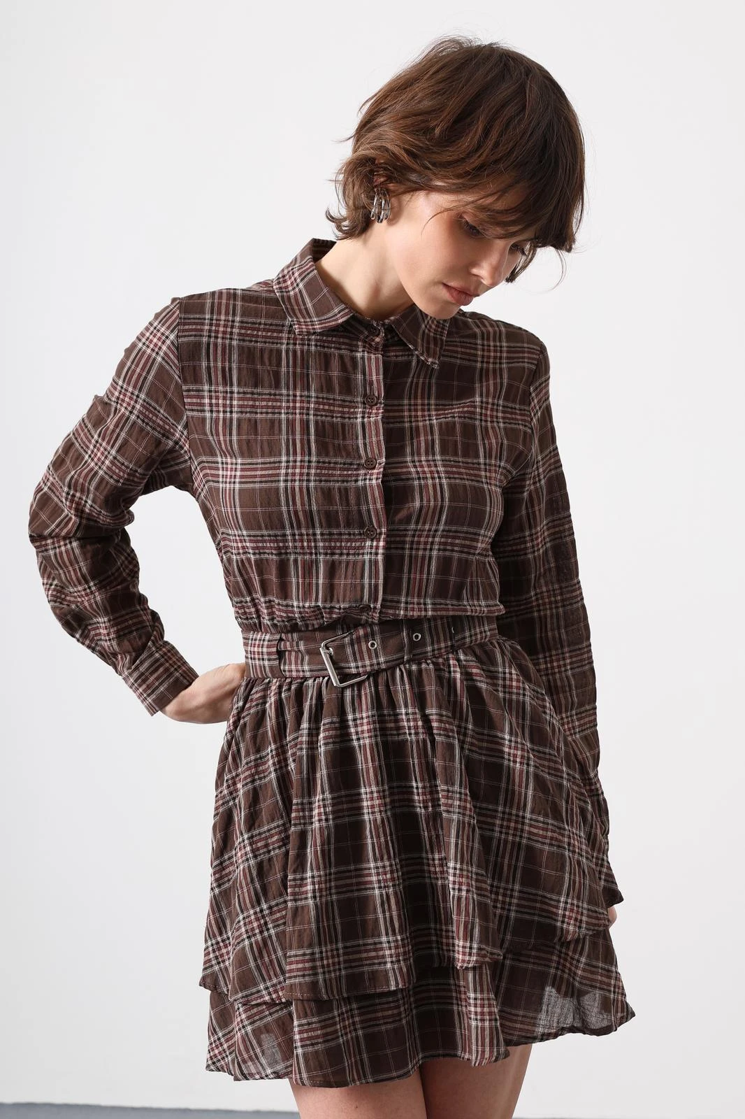 - Kısa silueti ile modern ve şık bir görünüm sunar. - Kemer detayı, belinizi vurgulayarak feminen bir duruş sağlar. - Uzun kollu tasarımı ile mevsim geçişlerinde rahatlıkla tercih edilebilir. - Baskısız ve çizgili deseniyle sade ve zarif bir stil oluşturur. - Orta kalınlıkta dokuma kumaşı, konforlu bir kullanım sunar. - Astarsız yapısıyla hafif ve rahat bir deneyim sağlar. - Gömlek yaka tasarımı, klasik ve zamansız bir hava katar. - Düğmeli kapama şekliyle kolayca giyilip çıkartılabilir. - Kloş kalıbı sayesinde hareket özgürlüğü sunar. - Mini boyu ile genç ve dinamik bir görünüm elde edilir. - Türkiye'de üretilmiş olup, sürdürülebilir malzemelerden yapılmıştır. - Cool & Comfort persona'sını yansıtan rahat ve stil sahibi bir tasarıma sahiptir. - Tüm sezonlar için uygun olan bu elbise, gardırobunuzun vazgeçilmezi olacak.
