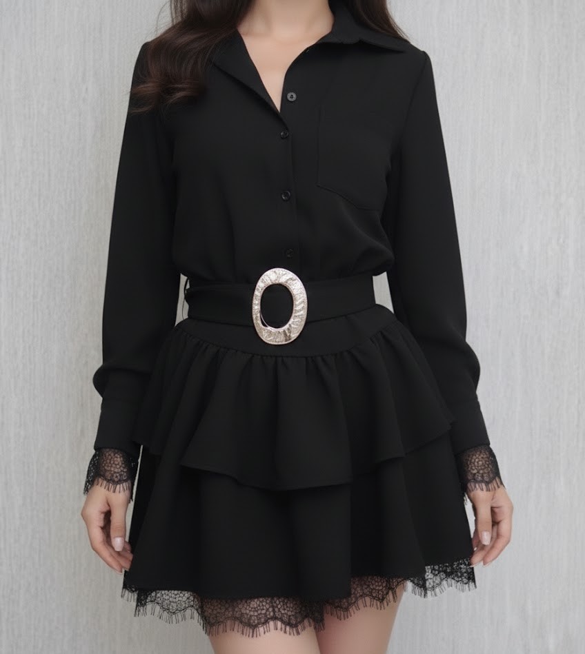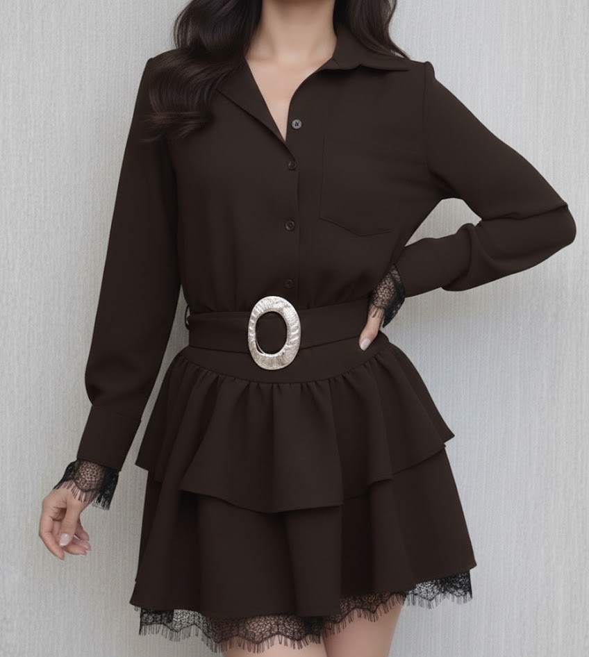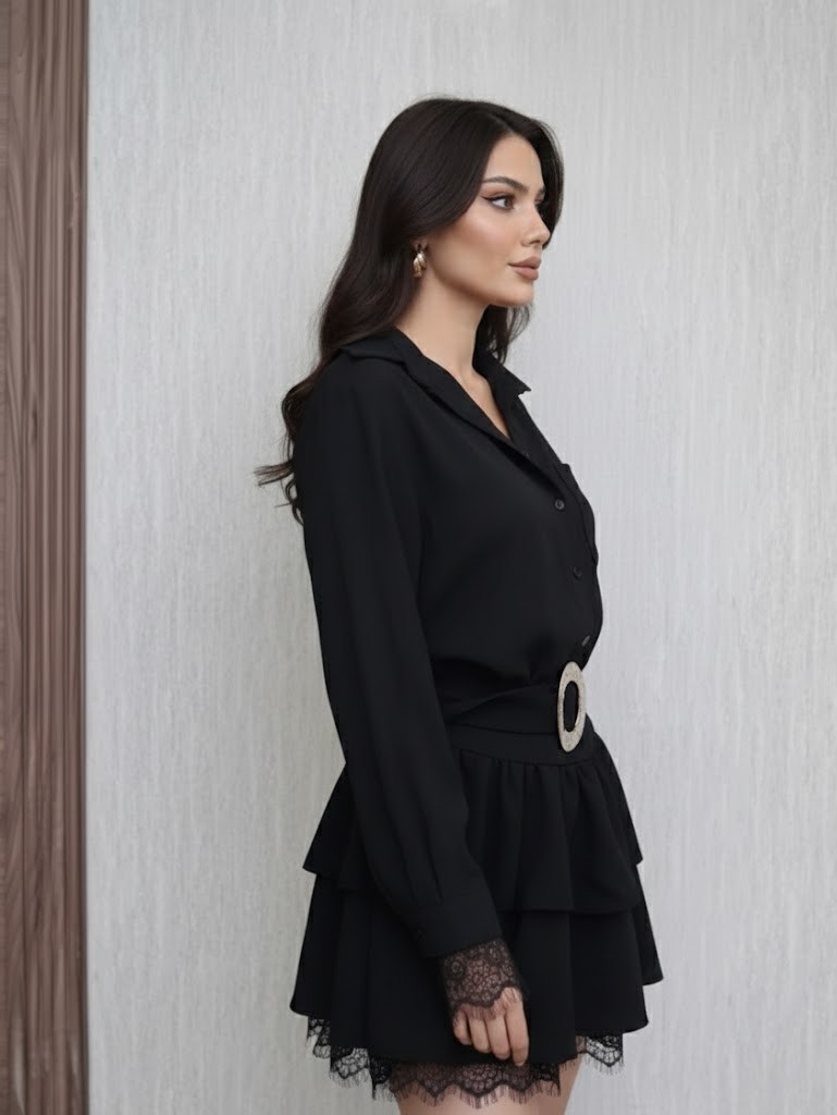 GÖMLEK YAKA DANTEL DETAYLI MİNİ ELBİSE