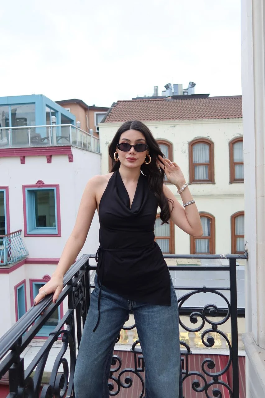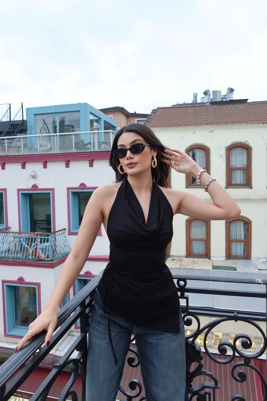– Yaz aylarında serin tutan ince yapısıyla rahat bir kullanım sunar.; – Degaje yaka tasarımı ile feminen bir görünüm kazandırır.; – Kolsuz kesimi sayesinde omuzları serbest bırakarak şık bir siluet oluşturur.; – Bağcıklı detayları ile belinizi vurgulayarak feminen bir duruş sağlar.; – Düz dokuma kumaşı, şık ve gece koleksiyonlarına uygun zarif bir dokunuş katmaktadır.; – Slim fit kalıbı ile vücut hatlarınıza mükemmel uyum sağlar ve modern bir görünüm sunar.; – Cepsiz ve kapsız tasarımıyla sade ve minimalist bir tarz yaratır.; – Polyester karışımlı materyali, dayanıklılığı ve kolay bakımı ile öne çıkar.; – Genç yaş grubuna hitap eden dinamik ve trend bir parça olarak gardırobunuzda yerini alır.; – Türkiye’de üretilmiş olup yerel üretimden yana olduğunuzu gösterir.;