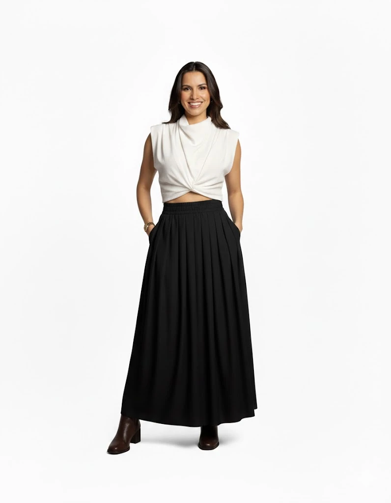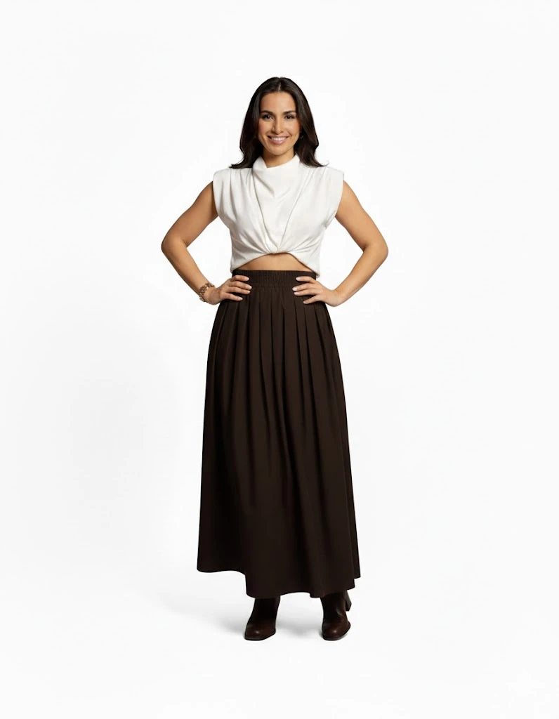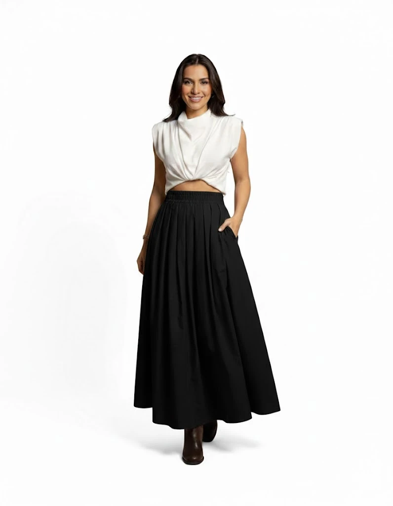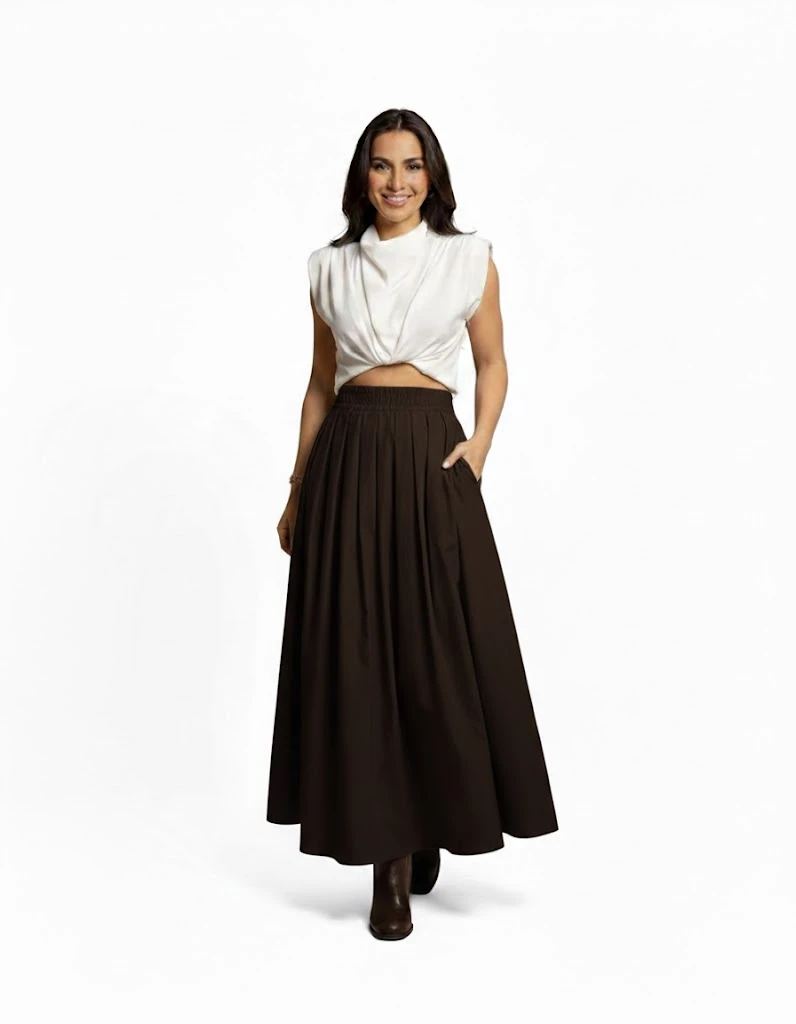 KADIN PLİSELİ MAXİ BOY POPLİN ETEK