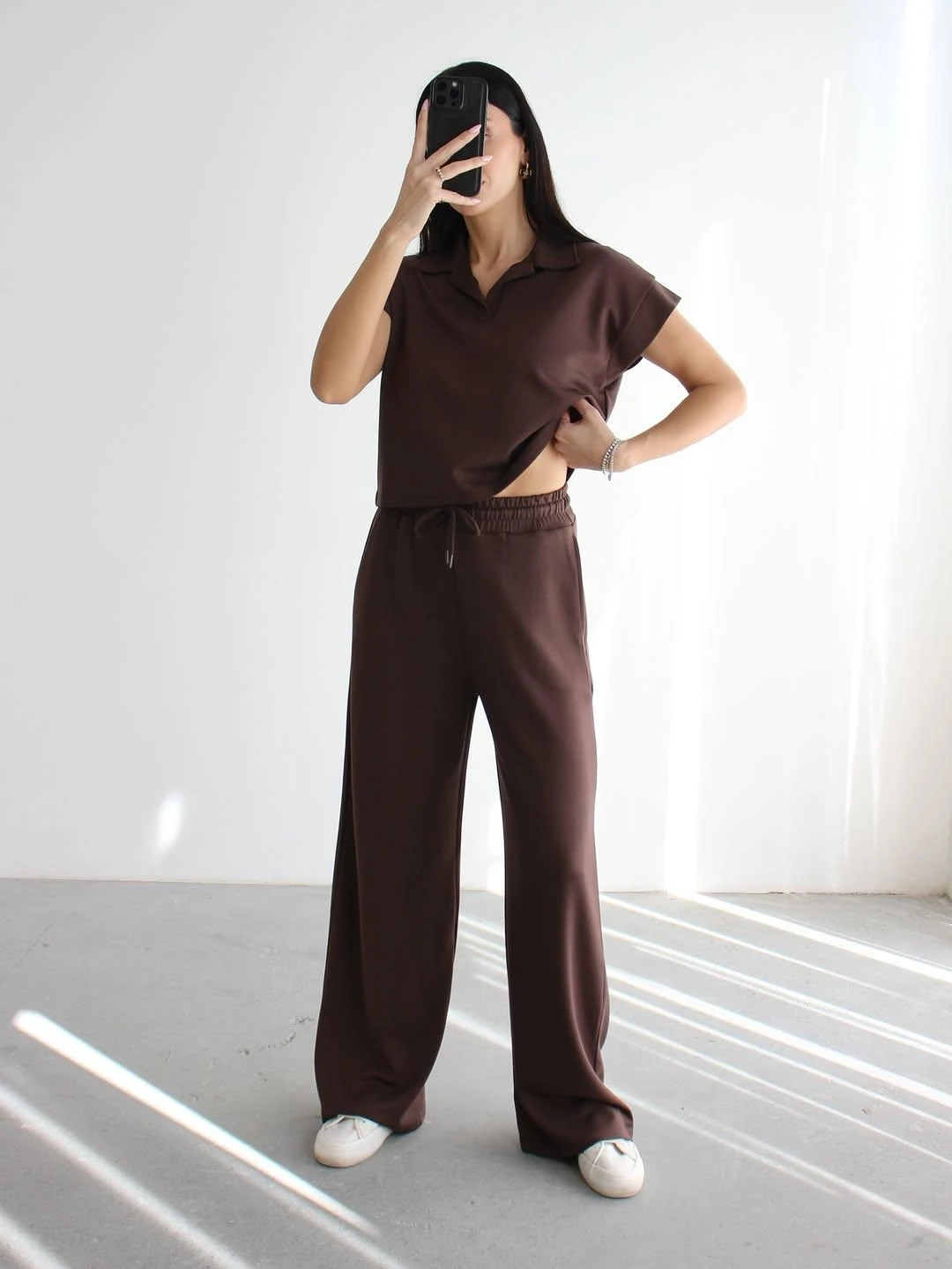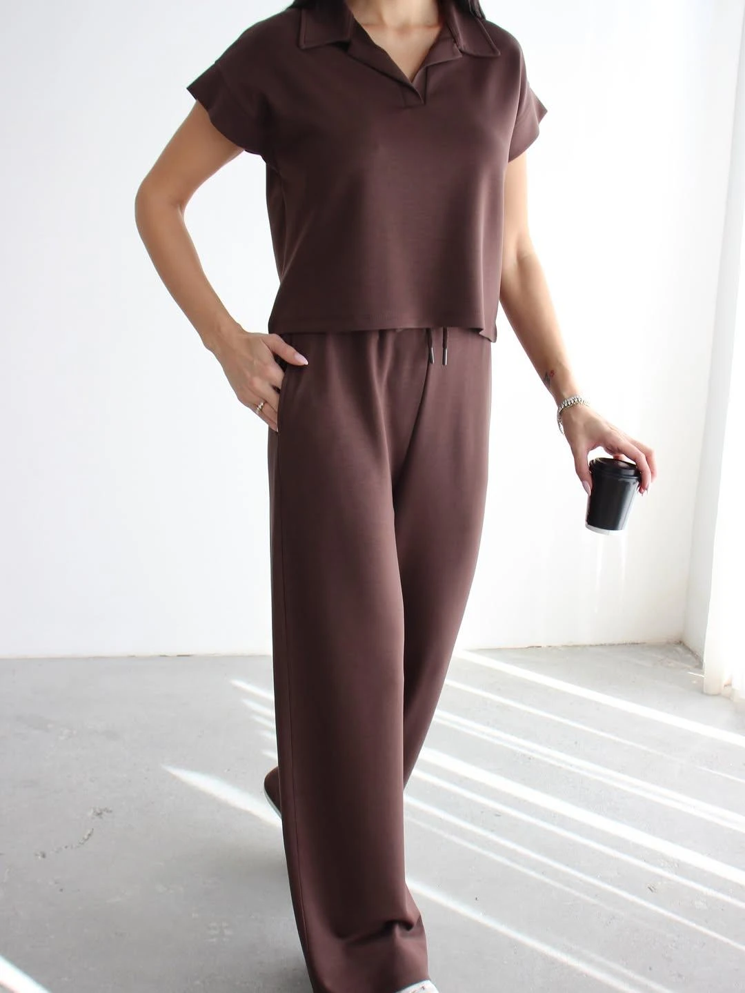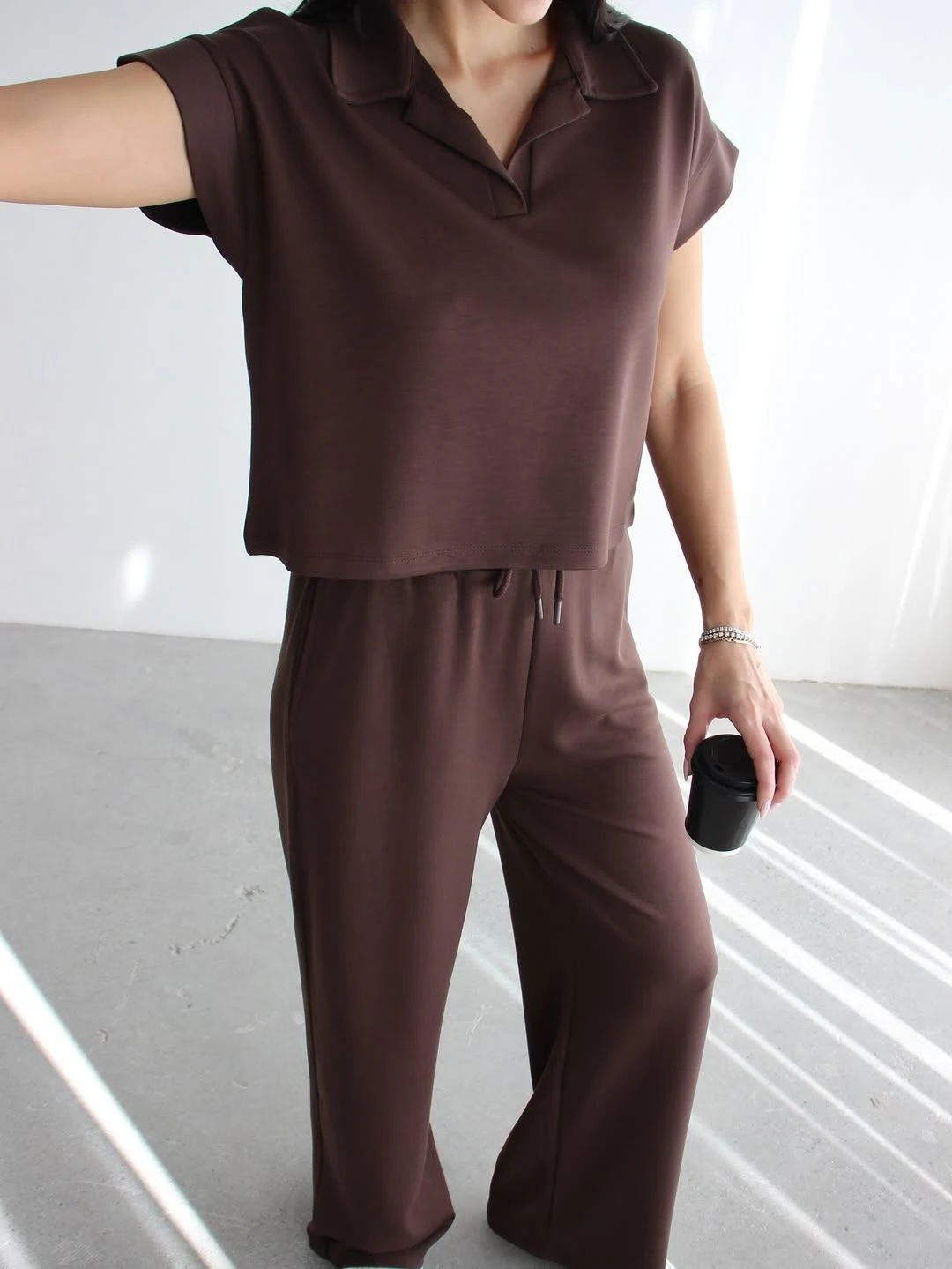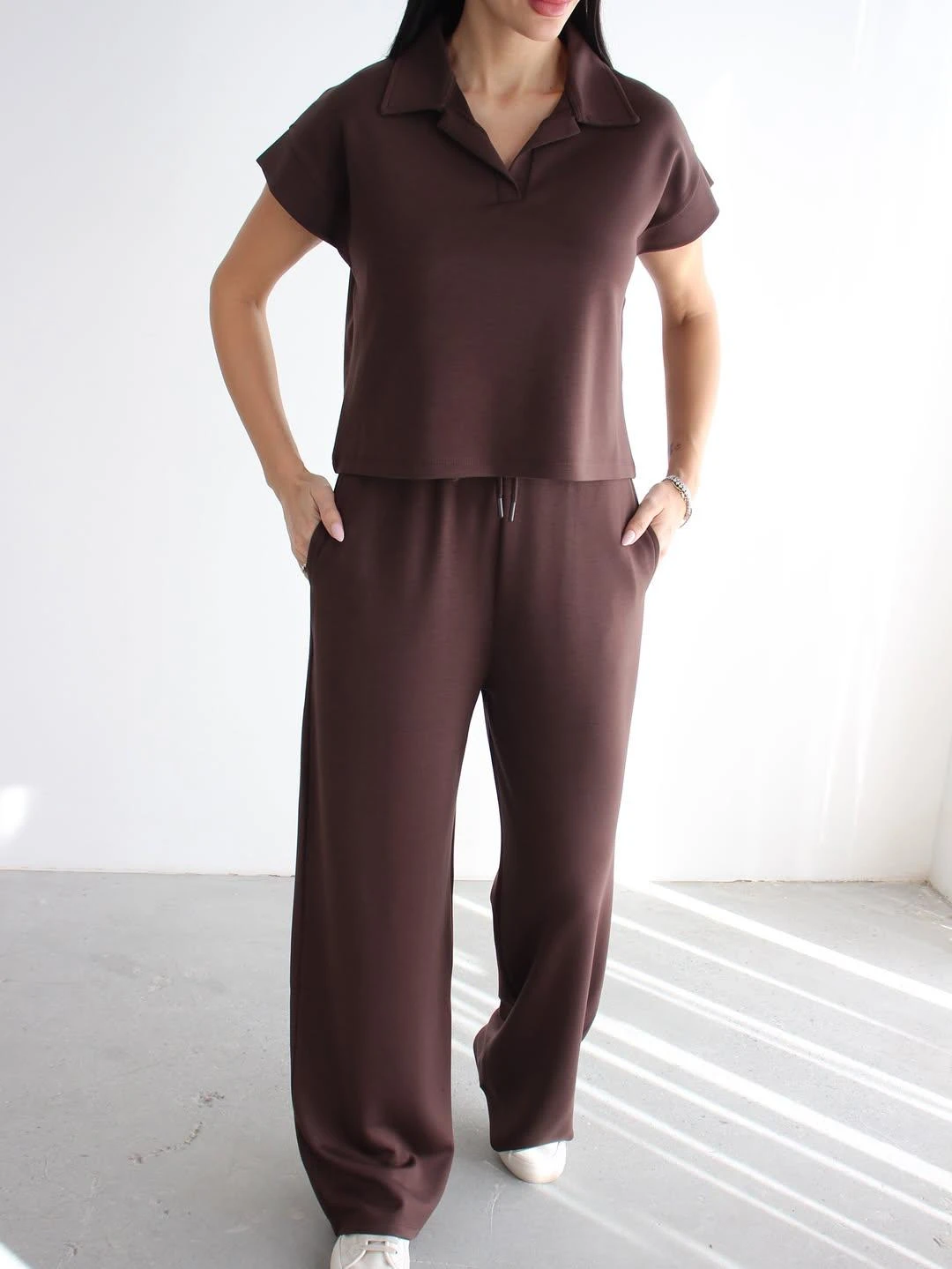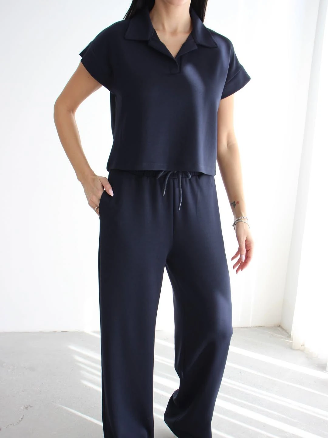 - Yumuşak dokusuyla konforlu bir deneyim sunan polo yaka modal soft touch spor takım. - Rahat hareket etmenizi sağlayan ispanyol paça tasarımı. - Günlük kullanıma uygun, pamuk materyalden üretilmiş, nefes alabilen kumaş yapısı. - T-shirt ve eşofman altından oluşan 2 parçalı set, kolay kombin imkanı sunar. - Düşük kol tipi ile serin ve rahat bir kullanım sağlar. - Lastikli bel tasarımı sayesinde mükemmel uyum ve rahatlık. - Baskısız düz tasarım, zamansız bir şıklık yaratır. - İnce yapısıyla hafif ve konforlu bir deneyim sunar. - Regular siluet, vücut hatlarını saran ancak sıkmayan ideal kalıptır. - Astarsız yapısı sayesinde hafif ve serin tutar. - Cool & Comfort persona ile günlük şıklığı yakalayın. - Tüm sezonlar için uygun, mevsim geçişlerinde ideal seçim. - Kısa kol boyu yaz aylarında serinlik sağlar. - Çift cepli tasarım pratik kullanım imkanı sunar. - Düz dokuma kumaş tipi, dayanıklılığı arttırır. - Bağcıklı kemer detayı ile belinizi istediğiniz gibi ayarlayabilirsiniz. - Polo yaka detayı ile spor şıklığına modern bir dokunuş. - Bağlama / bağcık kapama şekli kolay giyilip çıkartılmayı sağlar. - Casual / günlük koleksiyonun parçası olarak her ortama uyum sağlar. - Gündüz ve gece kullanımına uygun, çok yönlü bir parça. - Relaxed kalıp ile rahat ve özgür hissetmenizi sağlar. - Genç yaş grubuna hitap eden dinamik tasarım. - Uzun boy kesimi ile modern bir görünüm sunar. - Kadın / kız kullanıcılar için özel olarak tasarlanmıştır. - Türkiye'de üretilmiş olup yerli üretimdir. - Dokuma kumaş tipi dayanıklılığı arttırarak uzun süreli kullanım imkanı sunar.