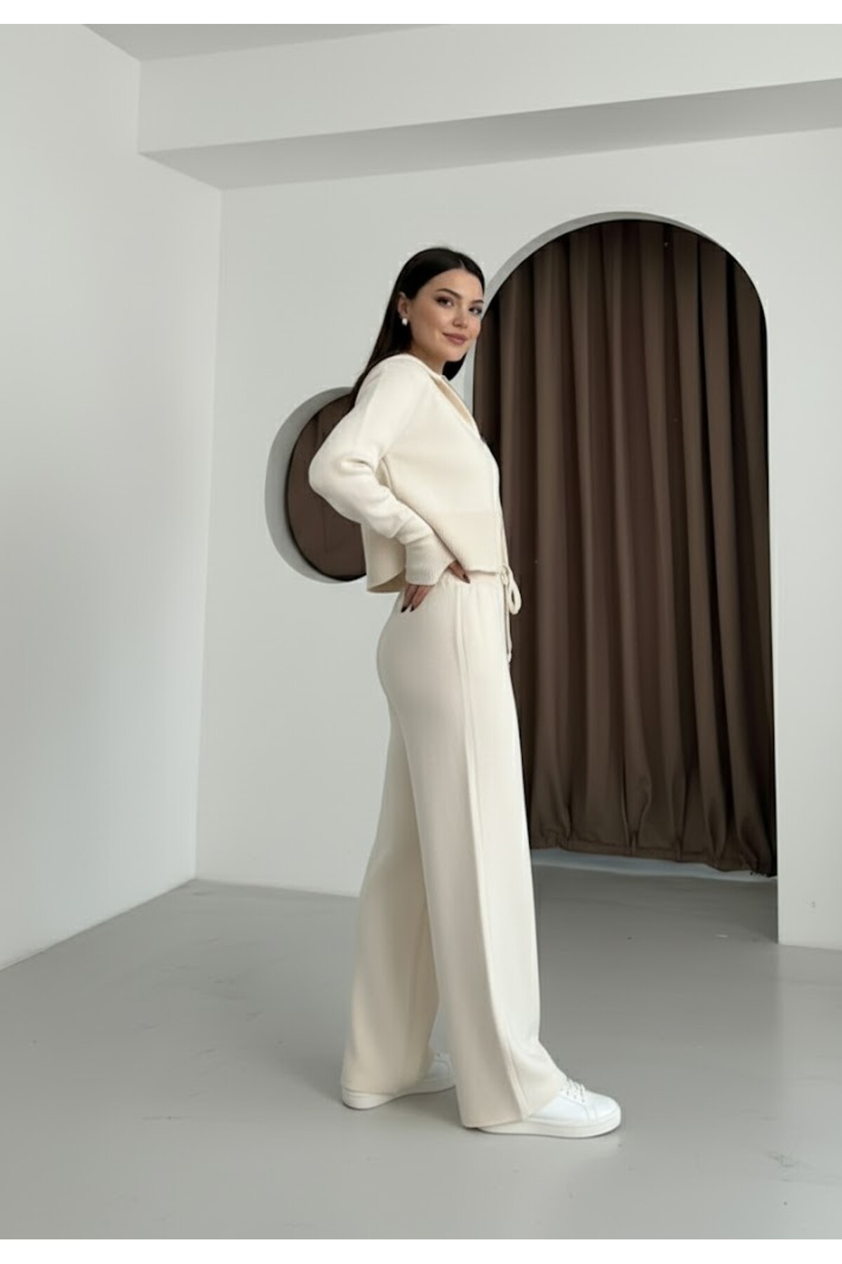 Kadın Kapüşonlu Triko Takım – Parmak Geçirmeli, Geniş Paça, Regular Fit