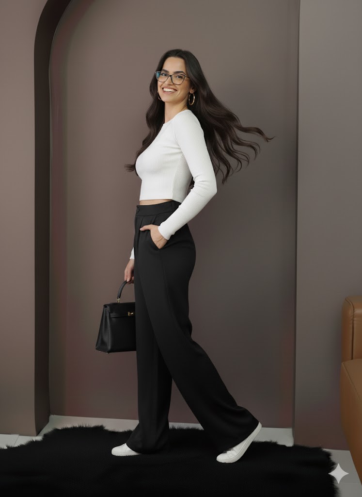 Stil Önerisi: Siyah pantolonu beyaz gömleklerle klasik bir kontrast görünümde, ya da pastel tonlu trikolarla yumuşak bir geçiş efekti yaratacak şekilde kombinleyebilirsiniz. Topuklu ayakkabılarla ofis şıklığı, sneakerlarla günlük rahatlık elde edebilirsiniz.