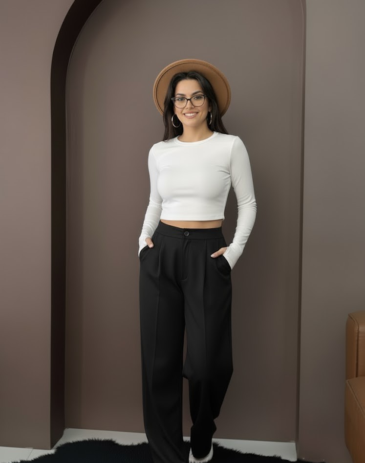 Zamansız şıklığın sembolü olan bu siyah yüksek bel boru paça pantolon, her kadının gardırobunda mutlaka bulunması gereken klasik bir parçadır. Duruşu, formu ve rahatlığıyla ofisten özel davetlere kadar her ortamda elegan bir görünüm sunar.